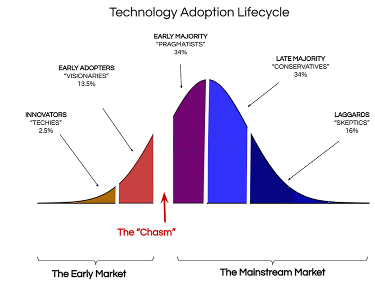 The Lab2Slab framework helps bridge “The Chasm” in the well-known Technology Adoption Life Cycle by recognizing that new materials need risk assessment as they progress from research to pilot testing, full-scale implementation, and eventually standard practice. Lab2Slab strategically supports each stage by addressing risks, providing open-access performance data in a comprehensive standardized format, and later in the process developing specifications and other practice documents needed for implementation.